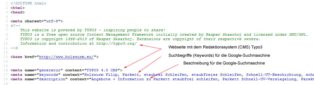 Der zweite Blick auf den Quelltext der Webseite (Tasten STRG+U drücken) zeigt mir: