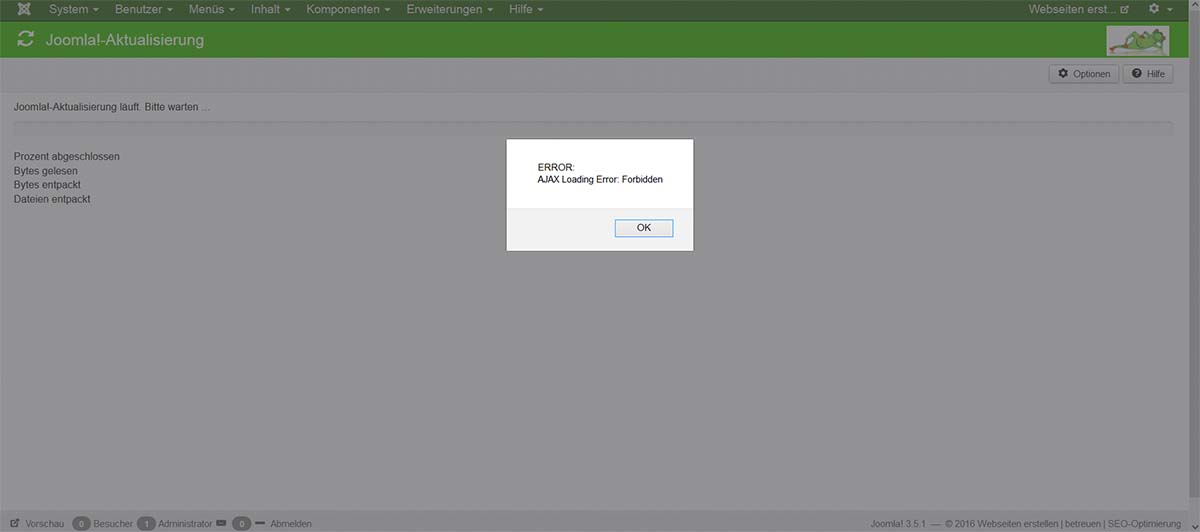 Nun kam meine Blogseite (diese hier) dran. Datensicherung lief ohne Probleme, aber dann die Fehlermeldung "ERROR: AJAX Loading Error: Forbidden". Aus der Meldung bin ich erst einmal nicht schlau geworden ...